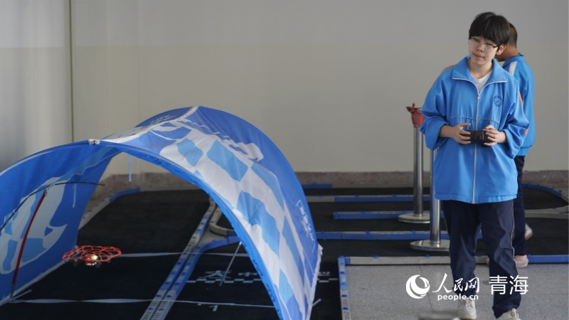 在西宁市第十中学的机器人教室里,学生们正在进行无人机飞行训练。作为"昆仑英才计划"入选者,杨银山校长认为人才引进和培养为学校发展注入了活力。