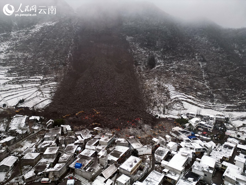 镇雄县“1·22”山体滑坡灾害现场。
